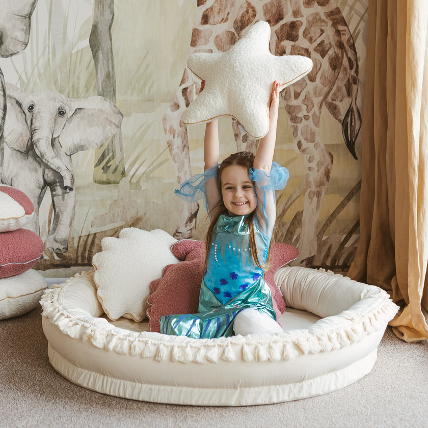 Design che ispira il gioco e la fantasia: le linee morbide, i colori neutri e lo stile bohémien creano un’estetica senza tempo che stimola il gioco libero e l’autonomia.